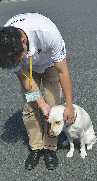 盲導犬を育成する同施設では、約60頭の訓練犬が暮らす。1頭ごとにデータを記録し、生後1歳からユーザーに渡すまでの約7カ月間、性格に応じた育成方針に従って訓練を行う。指示通りに動いたら「Good」と褒め教える基本訓練と、1日10〜30分の短時間でテーマを決めて実際に街中を歩く「タウンウォーク」の2種類がある。だが「訓練を積んでも盲導犬になれるのは適性がある3、4割」。試験をパスできなくても、街頭募金などのPR犬として活躍する犬もいるという。