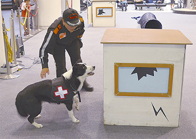 同局では2012年と14年に、救助隊と救助犬が連携した救出訓練を実施。今年2月には同協会と災害時の出動協定を締結し、締結後にも連携訓練を行うなど災害時の要救助者捜索に救助犬を投入する体制づくりを進めている。今後も救助犬との訓練を重ねて災害現場活動での有効性について検討や検証を行い、大規模災害に備えていくという。