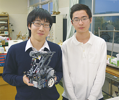 2人はハード担当(ロボット製作)は野口君、ソフト担当(プログラミング)は上田君とそれぞれ担当を分けて取り組む。全国大会まではブロックを穴に入れる正確性を重視していたが、世界大会へ向けてスピードを重視するようにプログラムなどを変更していくという。「世界では満点を取るのは当然。ショートカットして、時間を使わずに満点が取れるようにしないと上位は狙えない」と意気込みを話す。