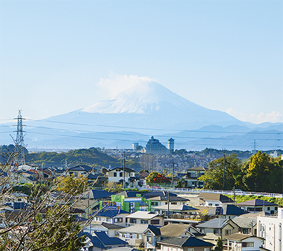 動植物が豊かな「自然観察」、バーベキューもできる「利用拠点」、里山の地形と景観を残した「散策の森」の3つのゾーンからなる小菅ケ谷北公園。その中の散策の森ゾーンの一部から、晴れていればきれいに富士山を望むことができる。