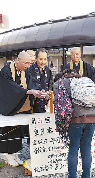 栄区仏教会(菅原紹雄会長)が12月11日、本郷台駅前で31回目となる「東日本大震災救援托鉢」を行った。当日集めた募金は「あしなが東日本大震災遺児支援募金」に寄付される。