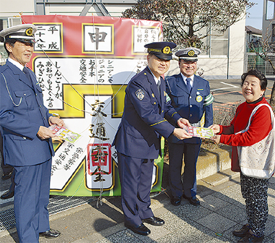 栄交通安全協会と栄警察署は1月7日、栄警察署前などでミニ凧を配って交通安全を呼び掛けた。