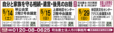 市川氏はこのような相続や遺言にまつわる誤った情報を解消してほしいと無料セミナーを実施する。実際の事例を紹介しながら、成年後見制度についても分かりやすく解説。個別に相談することもでき、「我が家なりの対策を考えてもらえて安心した」という声が。先着順。予約はお早めに。