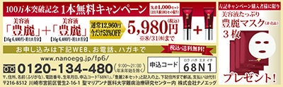 8月末迄の申込みで豊麗をお得に試せるキャンペーン実施中。さらに、美容成分たっぷりの豊麗マスク(非売品)3枚をプレゼント。