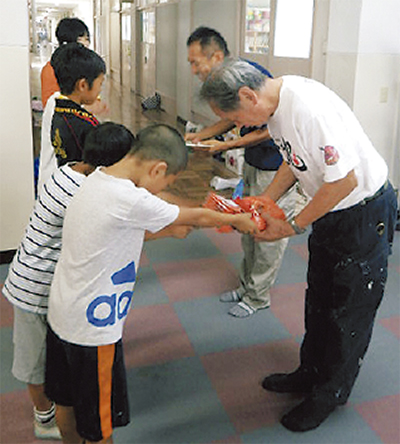 この両日には在校児童をはじめ保護者、教職員ら約70人が参加。昨年度に同校を巣立った卒業生も作業を手伝い、遠くは三重県や茨城県から駆け付けた『塗魂ペインターズ』のメンバーら約40人が現場で指導に当たった。