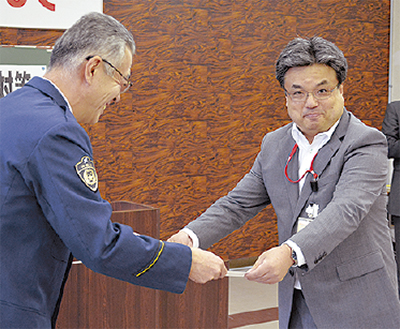 訓練実施後には、9月27日に振り込め詐欺被害を未然に防いだ横浜飯島郵便局(小原良浩局長)に対して感謝状を贈呈。積極的な声かけによって被害を防いだ功績を称えた。