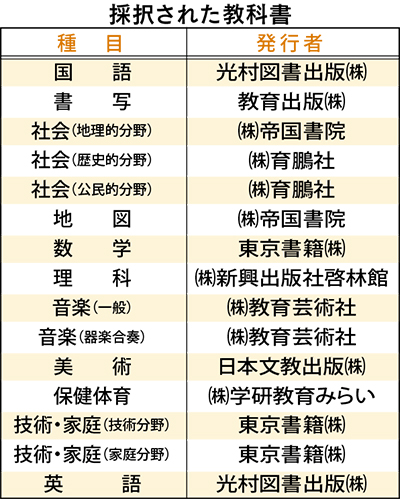中学校の教科書は原則4年に1回、教育委員会が検定教科書から各教科一種類を採用。市では前回から市内全域で共通の教科書が使われる方式となった。育鵬社版の教科書は、全国的にシェアを伸ばす一方、教育の現場からは「愛国心の育成に偏った記述があるので使いにくい」と採択替えを求める声も出ていた。