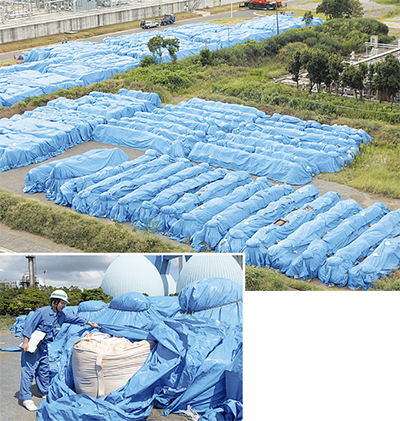 以来、毎日20t出る焼却灰は約800kg相当が入る袋で同センターの敷地内に保管している。「焼却灰は十分に湿らせ巾着型の二重になったビニール製の袋に入れ、さらにビニールシートをかぶせて保管してあります。雨水が入って漏れたり、飛散したりする心配はありません」と高橋義吉センター長は話す。保管敷地境界の放射線量は東西南北側いずれも0・08マイクロシーベルト(9月5日計測値)。自然界と変わらない数値と報告されている。