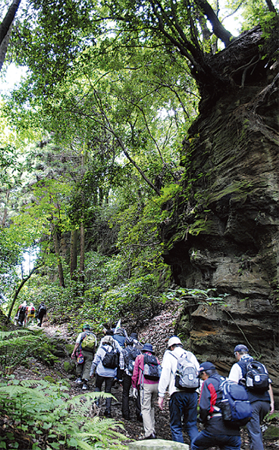 「かつてここは、石切り場でもあったんです」―。ガイドの林原泉さん(78)が随所で挟む説明に、参加者たちは熱心に耳を傾ける。鎌倉幕府の執権・北条泰時が約800年前に開いたとされるこの切通。交易拠点の六浦津と鎌倉を結ぶ交通路となった。「幸運なことに、ほとんど手つかずのまま残されている。非常に価値のある史跡です」と林原さんは話す。