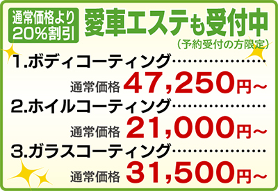 ボディやガラスコーティング…愛車エステも予約受付