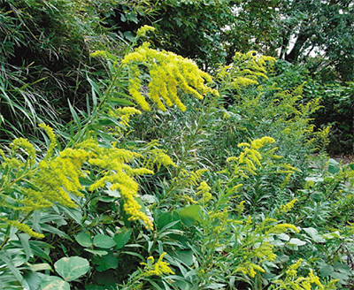 英名「ゴールデン・ロット」(金の鞭(むち))といいます。鞭を振るうように暴力的に大繁殖し、しかも綿毛をつけた多数の種子が風に乗り飛び散るので、花粉症の犯人に仕立てられました。しかし虫媒花のため花粉は少なく、同じキク科の「オオブタクサ」が花粉症の真犯人なのです。