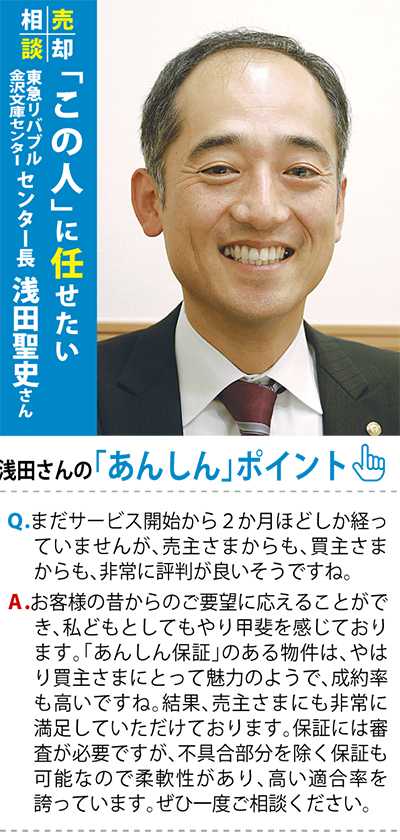「築十数年の我が家。売却後、給排水管やキッチン設備などに不具合が出ないか心配…。しかも売却直後の修繕費は売主負担と聞いたし、なかなか売却に踏み切れない」―。このように自宅売却を悩んでいる人のために、東急リバブルは修繕費用を保証する業界初のサービスを10月から開始した。その名も『リバブルあんしん仲介保証』。売却後の主要な構造部位の木部の腐食、雨漏り、給排水管の故障、シロアリの害の「瑕疵担保責任」を売主に代わって保証してくれる。この今大注目のサービスについて東急リバブル金沢文庫センターの浅田さんに聞いた。