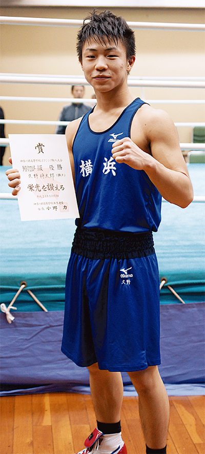 11月11日、神奈川県高等学校ボクシング新人大会ライトウェルター級で横浜高校1年の久野将太郎さんが優勝した。