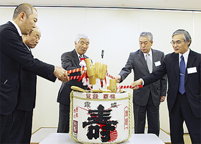 幸浦の卸売企業からなる協同組合横浜マーチャンダイジングセンター(上野達夫理事長)の賀詞交歓会が1月9日、同組合会館で開かれ、約50人が参加した。