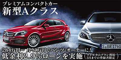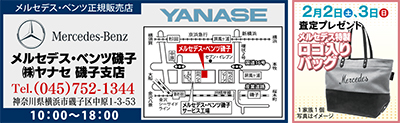 ヤナセ磯子支店が2月2日(土)・3日(日)、メルセデス・ベンツ新型Aクラスの展示試乗会を行う。お披露目記念に、査定者にメルセデス特製ロゴ入りバッグをプレゼント。