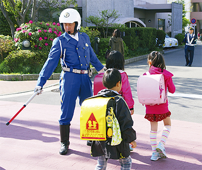 同署の交通課員や、管内の交番に勤務する巡査らが参加。期間中、毎日1時間ほど各校の通学路に立ち、児童への交通誘導や声掛けを行った。