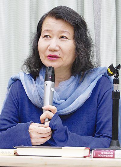 毎月一人のゲストを迎えて話を聞く「西柴夜話」が5月1日、行われた。主催はコミュニティーカフェ「さくら茶屋にししば」。今回は区内能見台に10年以上暮らしていたという作家の太田治子さんが登場し、太宰治を一途に愛した母・静子さんの並々ならぬ苦労や思い出を語った。会場となった西柴団地自治会館には、地域住民ら約70人が集まり、熱心に耳を傾けた。