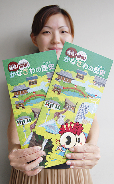 金沢区は子ども向けの歴史学習教材リーフレット「発見!探険!かなざわの歴史」を作成した。区の広報キャラクター「ぼたんちゃん」が、称名寺や朝夷奈切通など区内の歴史資産を説明。また、質問を随所に盛り込み、自分で調べる機会も提供している。リーフレットは、地域学習がカリキュラムに組み込まれている区内の小学3・4年生全員に配布されるほか、区役所地域振興課や各地区センターから入手できる。