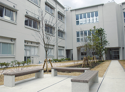 新校舎の延床面積は1万737・21平方メートル。3階建てで南、北、東、中央の全4棟からなり、それぞれの棟と体育館はつながっている。校内はバリアフリー化され、冷暖房完備。中庭に面した大きな窓からの採光で、室内全体が明るくなった。