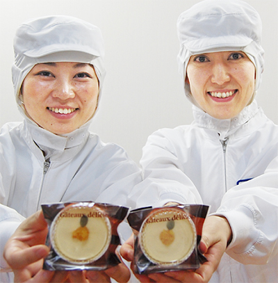 喜友が勝負するのは「お花畑のチーズケーキ」。「焼き菓子なのに生ケーキに近い食感。北海道チーズを使って濃厚に仕上げた」と話すのは開発者の岸井香澄さん。切り分けなくても手軽に食べられ、土産になるよう常温保存の効くチーズケーキを作ろうと開発を始めたという。もう一人の開発者・豊原知紗子さんは「オレンジピールを乗せて焼き上げたので見た目も華やか。チーズの濃厚さとオレンジの爽やかさを味わってほしい」と話す。