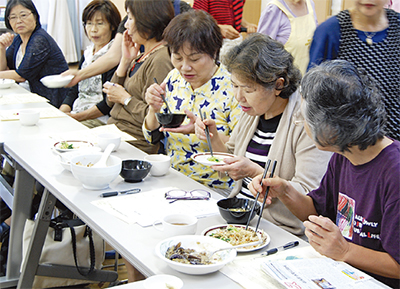食材宅配などを行う福祉クラブ生協が主催。生産者から雑穀米などの食材の紹介や、国内産製品の見分け方などの説明があった後、参加者で試食を行った。金沢連絡会議の南谷裕代表は「安全な食材を多くの人に紹介したい。生産者のことを知ってほしい」と話した。