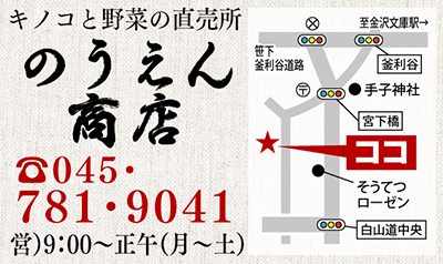 朝採りシイタケで人気の永島農園(釜利谷東)の直売所が10月1日(水)朝9時から、「のうえん商店」となってリニューアルオープンする。