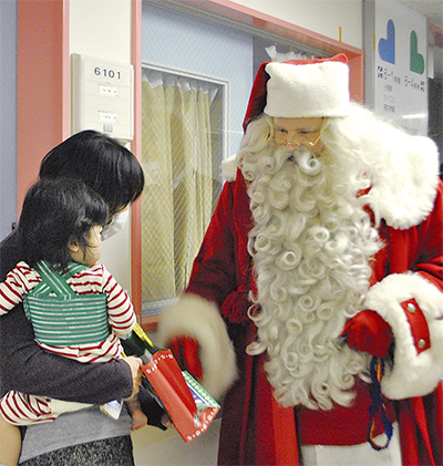 「入院中の子どもたちにもクリスマスを楽しんで欲しい」――。そんな思いから、横浜金沢マリーンライオンズクラブと横浜小児ホスピス設立準備委員会は12月18日、フィンランドのサンタクロース財団公認のサンタクロースを招き、横浜市立大学附属病院の小児科病棟を訪れた。