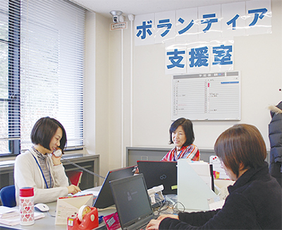 支援室にはコーディネーターら3人が在籍する。従来は学生や教授が個人・グループで対応してきたボランティア活動を大学として一元化。学生のボランティア希望の受け付けや派遣、各地域団体からのボランティア要望の受け付け、地域課題・ニーズの調査、学生の地域貢献活動の支援などを行っていく。大学の特色を反映させた独自プログラムを学生に提供するとともに、地域のニーズにワンストップで対応できる体制を目指す。
