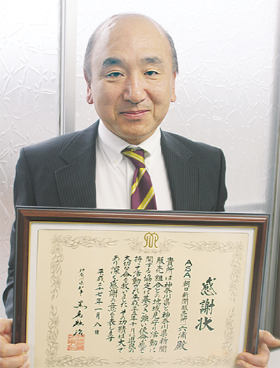 同所が人命救助に繫がる活動を行ったのは2013年10月。一人暮らしの高齢女性宅の新聞が溜まっていることを従業員が発見し、店長の松木健治さんに報告。声をかけて中に入ると、足を骨折しており動けない状態だったという。トイレにもいけない状態で女性は搬送を拒んだが、松木店長や六浦地域ケアプラザのスタッフが説得し、救急搬送された。