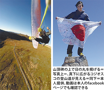 世界七大陸最高峰登頂とパラグライダー飛行に挑戦する、横浜高校出身の浅野暢来(いたる)さん(19/東海大学)が3峰目に成功した。富士山、仏・モンブランに続き、挑戦する山の中で最も低い豪州最高峰のコジオスコ(標高2228m)山頂から飛行した。