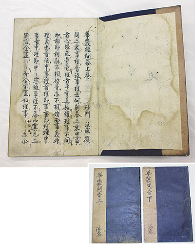 神奈川県立金沢文庫(金沢町)は今年3月、14世紀中ごろに書写されたと思われる「華厳経問答(けごんきょうもんどう)」(上巻40ページ、下巻30ページ超)を発見した。称名寺所蔵の仏教典籍約2万点の中から発見したのは、主任学芸員の道津綾乃さん(43)。東洋大学東洋学研究所客員研究員・岡本一平さんと新羅・高麗時代の仏教テキスト研究のための調査中、「華厳経問答」という目録に目がとまったという。