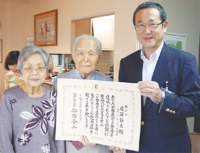 100歳敬い、表彰状を