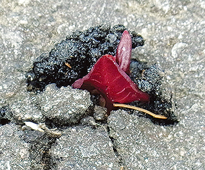 明治の頃、土壌の浸食防止や園芸用に、イギリスとアメリカへ導入され、喜ばれましたが、次第に周辺地へ拡大繁殖し、在来種を追い払い、強害草の汚名をつけられました。さらに地下茎による石垣やコンクリートを突き破り=写真下=、電車のレールを押し上げ、堤防の破壊等外国で大暴れしています。しかも除草剤にも強く、地下茎で繁殖するので手に負えません。