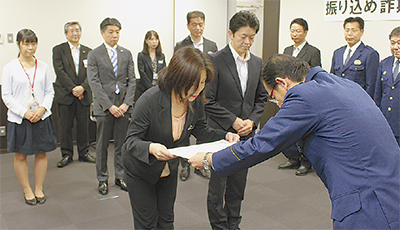 区内の金融機関が詐欺防止に努める中、10月中に4金融機関で詐欺の未然防止があり、10月28日に感謝状の贈呈が行われた。