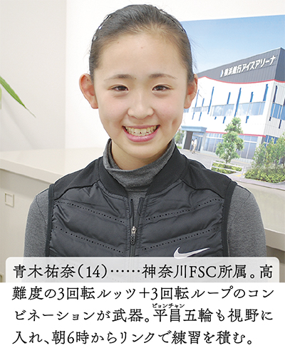 昨年末に行われた「全日本フィギュアスケート選手権」。トップスケーターが集う憧れの舞台に、富岡中学2年の青木祐奈さんが立った。総合155・84点で16位。「出場は夢であり目標。良い経験になった」。ほろ苦いデビューをそう振り返るが、期待の14歳は最速で、夢を叶え始めている。