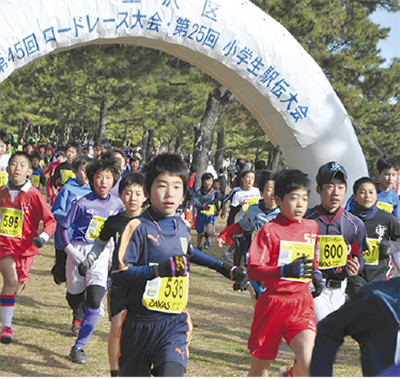 第45回金沢区ロードレース大会及び第25回小学生駅伝大会が2月11日、海の公園と八景島で行われた。