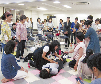 当日は生活に即した防災知識を分かりやすく説明。茨城県の洪水を例に、「大人は膝丈まで水がくると動けないが、その場合、子どもは腰まで水に浸かってしまう」と子どもの視点で対策するよう呼びかけた。また、持っておきたい防災グッズの紹介やさらしの活用法、防寒対策など実演を交えて説明した。参加した母親からは「普段の生活に密着した防災を知ることができた」「一番大切なのは自分で行動し、考えることだと感じた」などの感想が聞かれた。