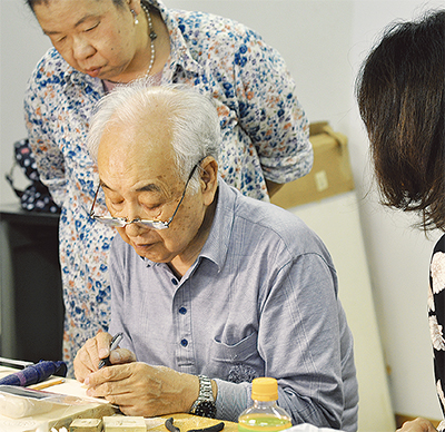 区内外から会に通う生徒は32人。月1回程度、京都府から通う郡奈々子さん(34)は、芝山象嵌を習いたいとインターネットで探し、この講習会にたどり着いた。「子どもや孫の代になった時に日本の技術が絶えてしまうのは、寂しい。宮崎先生の域には到底到達できないが、習った生徒が集まれば何十分の1くらいにはなるはず」と話す。継承の心は確実に育っている。