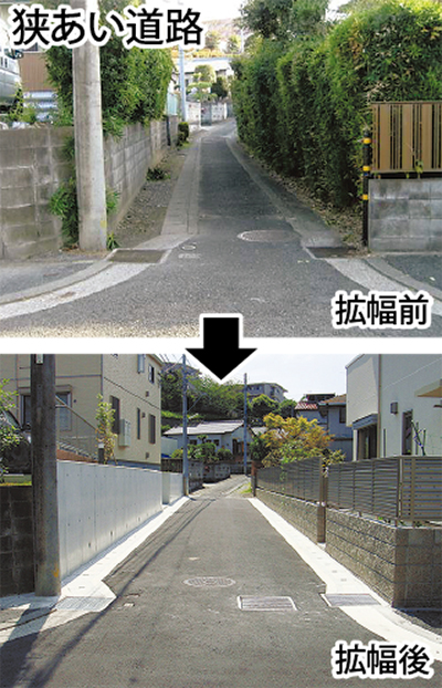 横浜市は通行上、防災上で問題がある狭(きょう)あい道路のうち、505Kmを整備促進路線と定めて助成制度を盛り込んだ拡幅整備事業を1995年から実施しているが、3月末時点までに拡幅できたのは166Kmに留まっている。