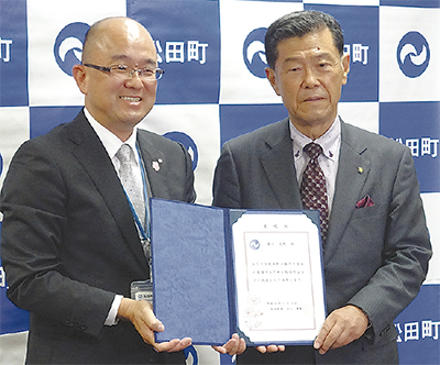 本山町長は「町民のみならず多くの皆様に喜んでもらえると思う。野球を通じて培われた教育論は松田町だけではなく全国や世界でも必要とされている。そうした方にふるさと大使をお受け頂き感謝している」とあいさつした。