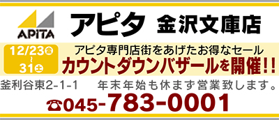 33の専門店が集う「アピタ金沢文庫店」。あす12月23日(祝)から31日(土)まで、カウントダウンバザールを開催する。本コーナーは、生まれ変わったアピタの専門店を紹介していく。