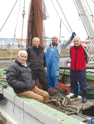 漁のある日は午前2時に起床し、前日獲った魚を市場に卸して5時に港を出る――。「中途半端では勤まらない。好きじゃなきゃできない商売」。漁の道具も自分たちの手作りだ。「特に網は人それぞれに工夫して作る。それが面白い」と話す表情には、漁への想いがにじむ。