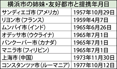 横浜市の姉妹都市として最も古い、アメリカ・サンディエゴ市との提携が今年、60周年を迎える。交流の一環として4月に横浜市側の行政関係者や横浜サンディエゴ友好委員会(川口正寿会長)のメンバーら代表団約20人が現地を訪問し、交流会などが行われる予定。秋には横浜市内で、市民向けの記念事業も検討されている。