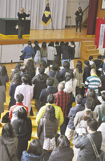 実行委員長を務めた赤木洋さん(45)も両校の卒業生。7年前から小中合同の学校運営協議会のメンバーとして活動してきた。「今回、学校名と校歌、校章がなくなると聞き、何かやらなければと思った」と振り返る。卒業生やPTA、教職員ら約15人で実行委員会を立ち上げ、「みんなで校歌を歌う、ただそれだけのために集まるのも面白い」と今回の”ザ・ファイナル”を企画。2カ月ほど前からポスターの掲示やフェイスブックなどのSNSで、参加を呼びかけてきた。