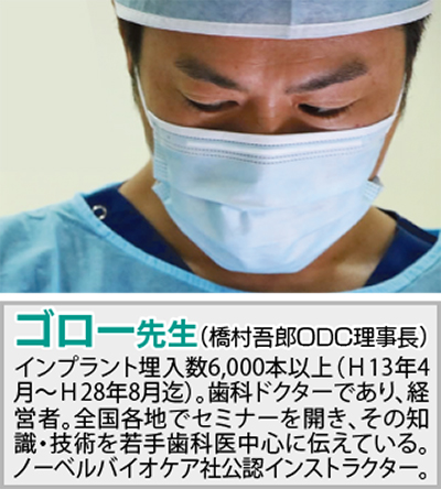 昨年末、あるTV番組で埋入後3年が過ぎたインプラント患者の約1割にトラブルがみられた――との報道があった。インプラントを埋入した箇所周辺に炎症を引き起こしていたというものだ。都内や横浜、川崎で歯科医院を運営するODCグループのゴロー先生(橋村吾郎理事長)の「見解」を聞いた。
