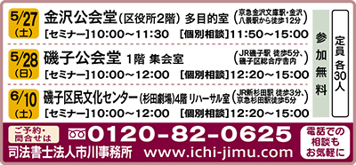 市川氏は、相続に関わる正しい知識を得て、安心した老後につなげて欲しいと、セミナーと個別相談会を実施する。参加無料。定員制先着順。予約はお早めに。
