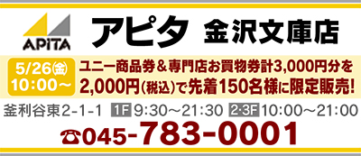 昨年新装開店した「アピタ金沢文庫店」。本コーナーでは新生アピタの専門店を紹介する。また、月末金曜日の「プレミアムフライデー」を楽しむお得な企画もあるので要チェックだ。