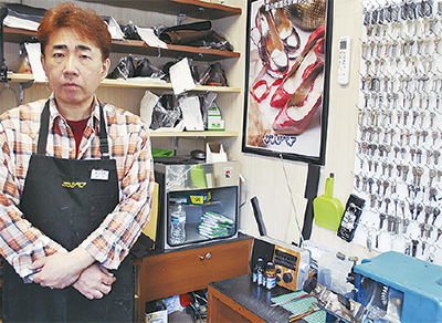 使い慣れた靴や鞄の修理から合鍵の製作まで行う「サンリペア」は、アピタ正面入口前に店を構える。靴のかかと修理やつま先のキズ補正などに加え、珍しいのがクリーニング。「3週間預かり、メンテナンスします。染め直しや臭いとりもできます」と話すのは相原店長。その道15年の腕で、愛着のある靴を蘇らせる。