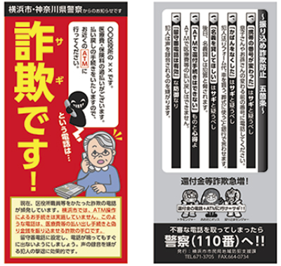 横浜市は、還付金詐欺対策として、6月14日に発送した「2017年度介護保険料額決定通知書」に啓発チラシを同封した。