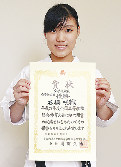 福島県で7月31日に行われた全国高等学校総合体育大会(インターハイ)の空手道競技女子個人形で、横浜創学館高校(金沢区六浦東)の石橋咲織さん(3年)が初優勝を果たした。石橋さんは、3月の選抜大会を制しており、高校2冠を達成した。
